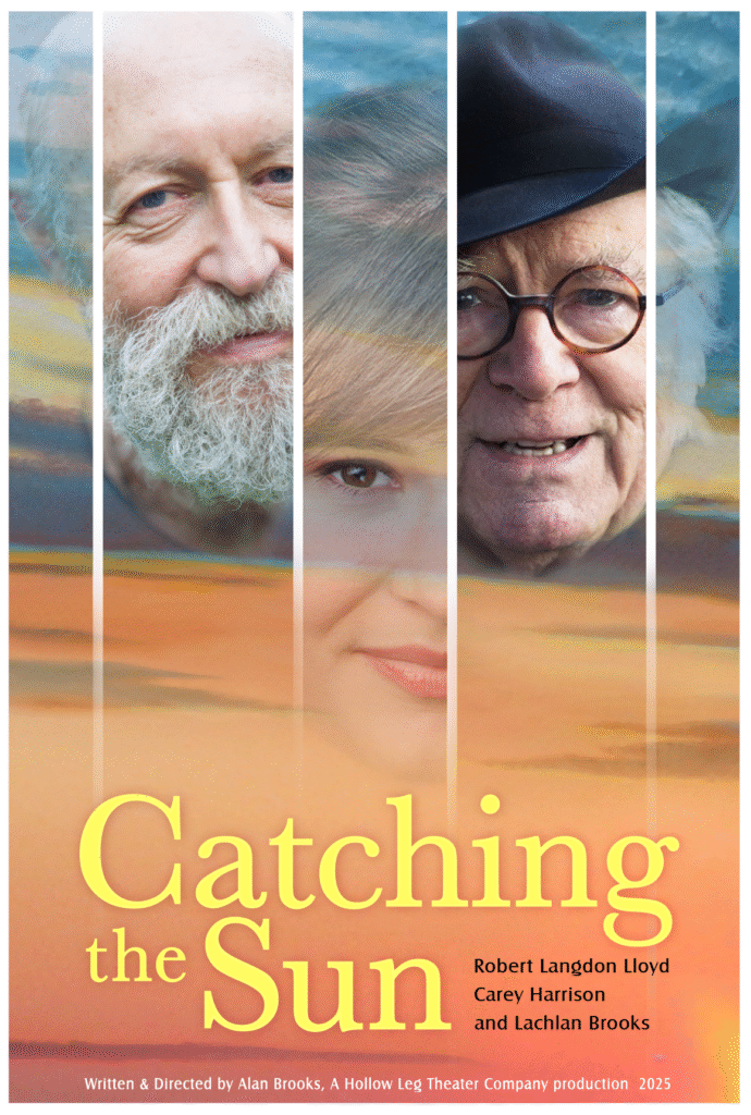 We shot Catching The Sun a few years ago, but life, budget, time… so many things got in the way of pushing it over the finish line. Last November the planets aligned or maybe the meds adjustment did it, and I found myself looking over the footage, editing, tweaking sound and feeling the injustice of my not putting the film out after all the great effort from the cast and crew. While the film was being edited, in January of this year (2025) our beloved friend Carey Harrison, who plays Wally in the film, passed away – a terrible loss to his family, friends and community, and a sad but powerful reminder to carpe the hell out of the diem, as Carey always managed to do. Now the film is ready and I’m looking for the venues and festivals where it can find a home and an audience. Also staring the wonderful and talented Robert Langdon-Lloyd and equally wonderful and talented Lachlan Brooks. As always, I stand on the shoulders of giants, and am perpetually amazed that they don’t swat me off their epaulets.